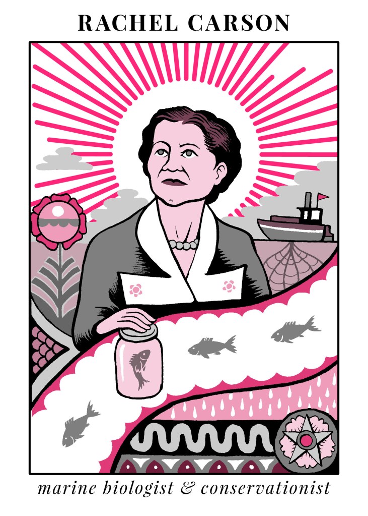 Rachel Carson, (1907-1964) was an American biologist well known for her writings on environmental pollution and the natural history of the sea. Her book, Silent Spring (1962), became one of the most influential books in the modern environmental movement and provided the impetus for tighter control of pesticides, including DDT.