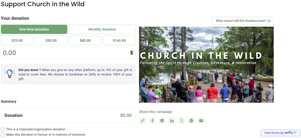 Your generous support today is a vote for these values and our mission, ensuring that Church in the Wild remains a beacon of spiritual connection and natural preservation. Every penny goes straight to work in our community providing a home for the spiritually homeless and reaching out to care for the most vulnerable. Join us in our journey.